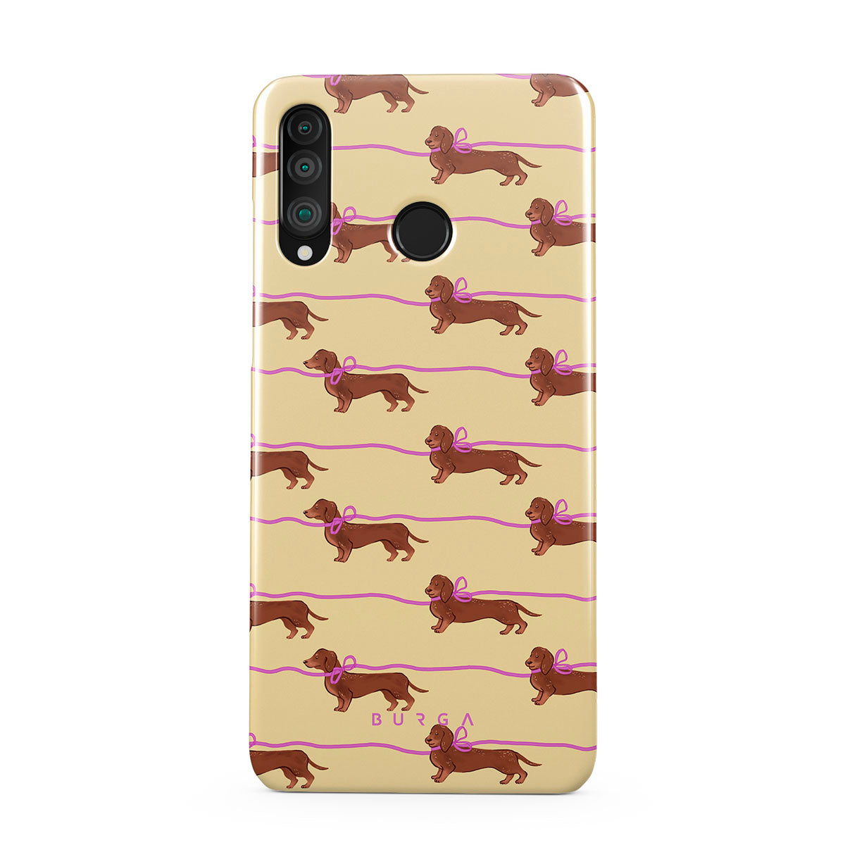 This Huawei P30 Lite phone case design doesn’t believe in time, only vibes. It features sassy sausage dogs with bows who, like you, are running 15 minutes behind—and blaming Mercury.