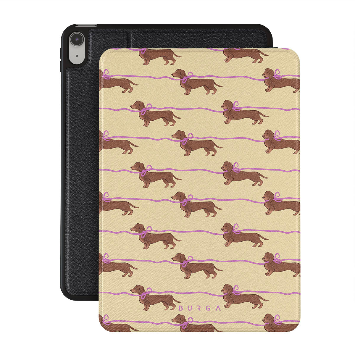 This iPad 10.9 (A16/10th Gen) design doesn’t believe in time, only vibes. It features sassy sausage dogs with bows who, like you, are running 15 minutes behind—and blaming Mercury.