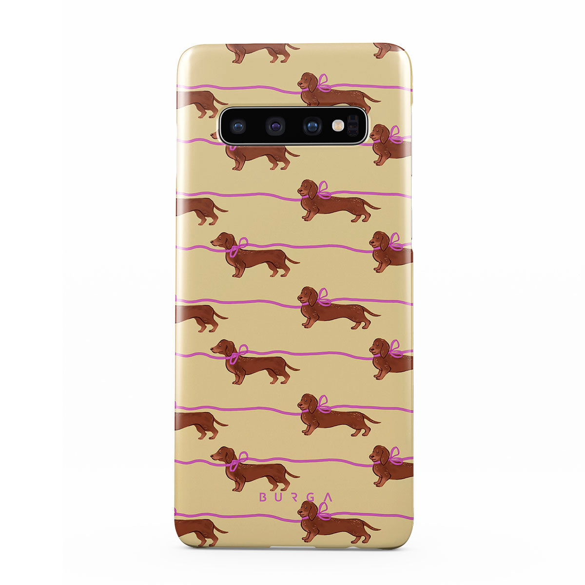 This Samsung Galaxy S10 Plus phone case design doesn’t believe in time, only vibes. It features sassy sausage dogs with bows who, like you, are running 15 minutes behind—and blaming Mercury.
