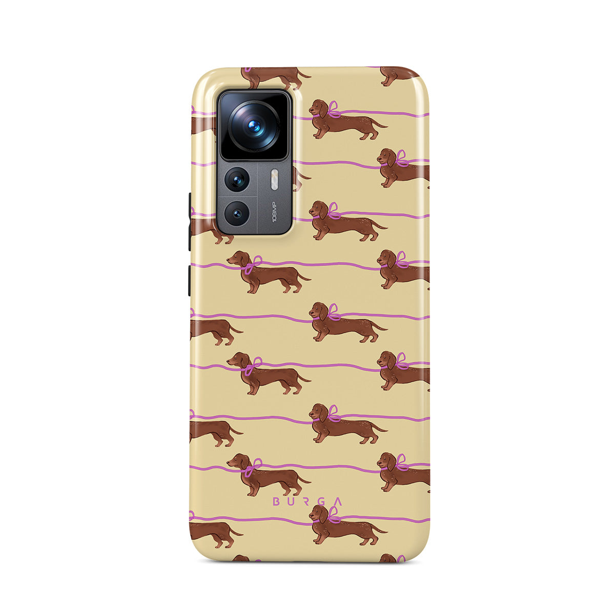 This Xiaomi 12T Pro phone case design doesn’t believe in time, only vibes. It features sassy sausage dogs with bows who, like you, are running 15 minutes behind—and blaming Mercury.