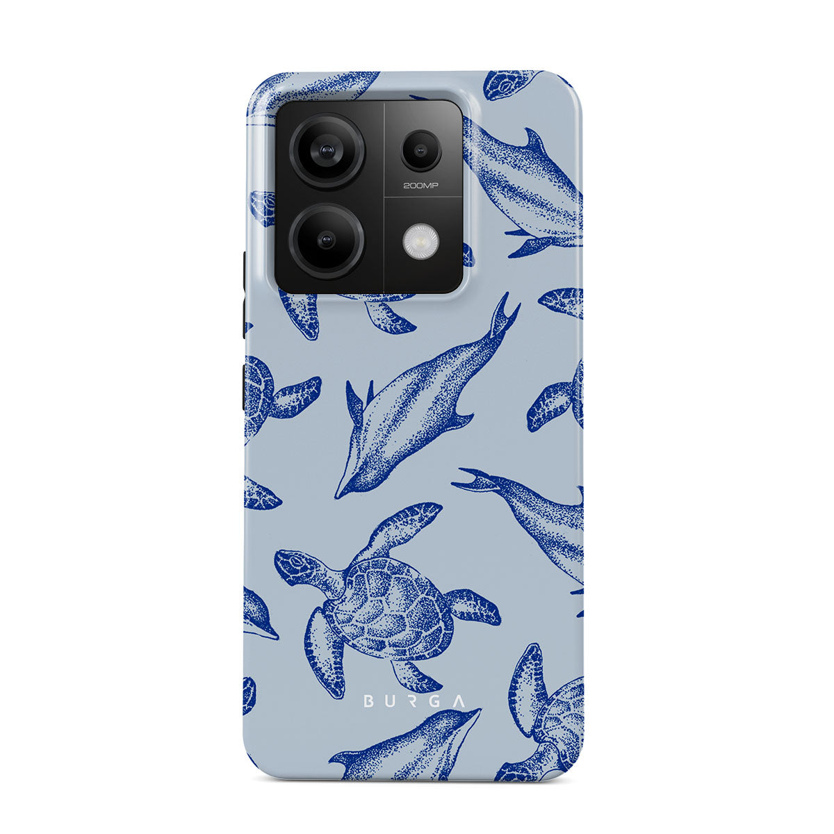 A beautiful design featuring lively turtles and dolphins playfully dancing in serene light blue water. Dive into the ocean's rhythm with our Aquatic Dance Xiaomi Redmi Note 13 Pro 5G case.