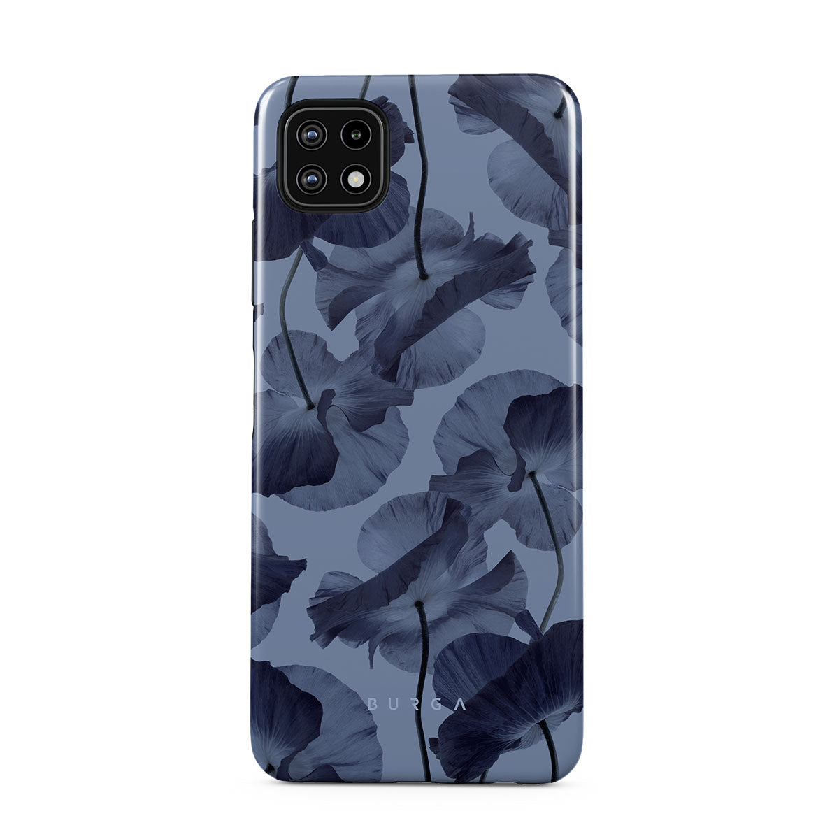 This Samsung Galaxy A22 5G phone case design blends seamlessly into any workspace, offering a polished yet mysterious touch. Mixing deep blue flowers and a bright blue background, our Archives pattern is perfect for those who like their style to whisper, not shout.