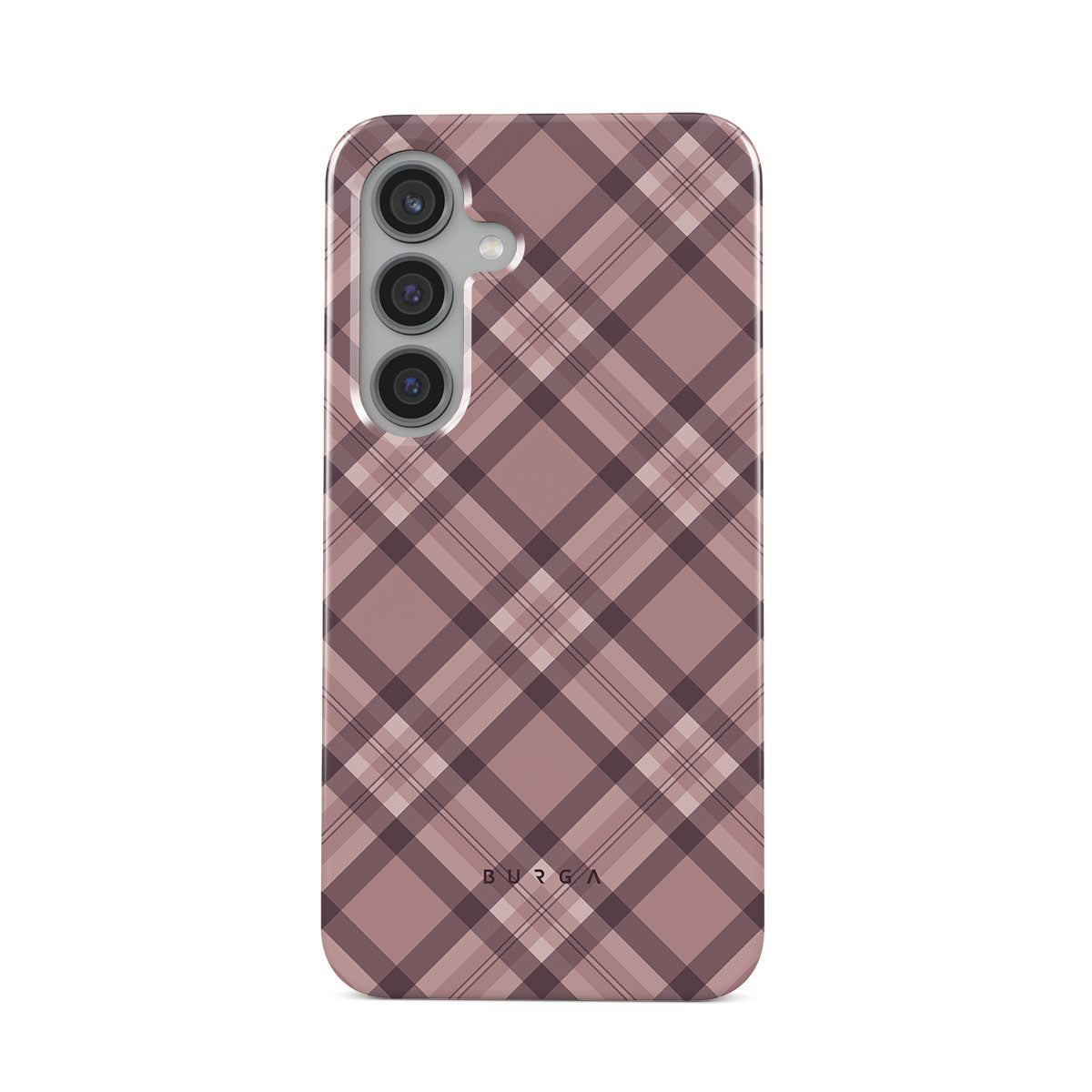 Made for those who hustle hard and look sharp. Our ASAP Samsung Galaxy S24 Plus phone case design features a sleek rosé-gray background with diagonal plaid in soft grey and deep pink—mixing modern flair with understated elegance. For the pros who know that style and speed go hand-in-hand.
