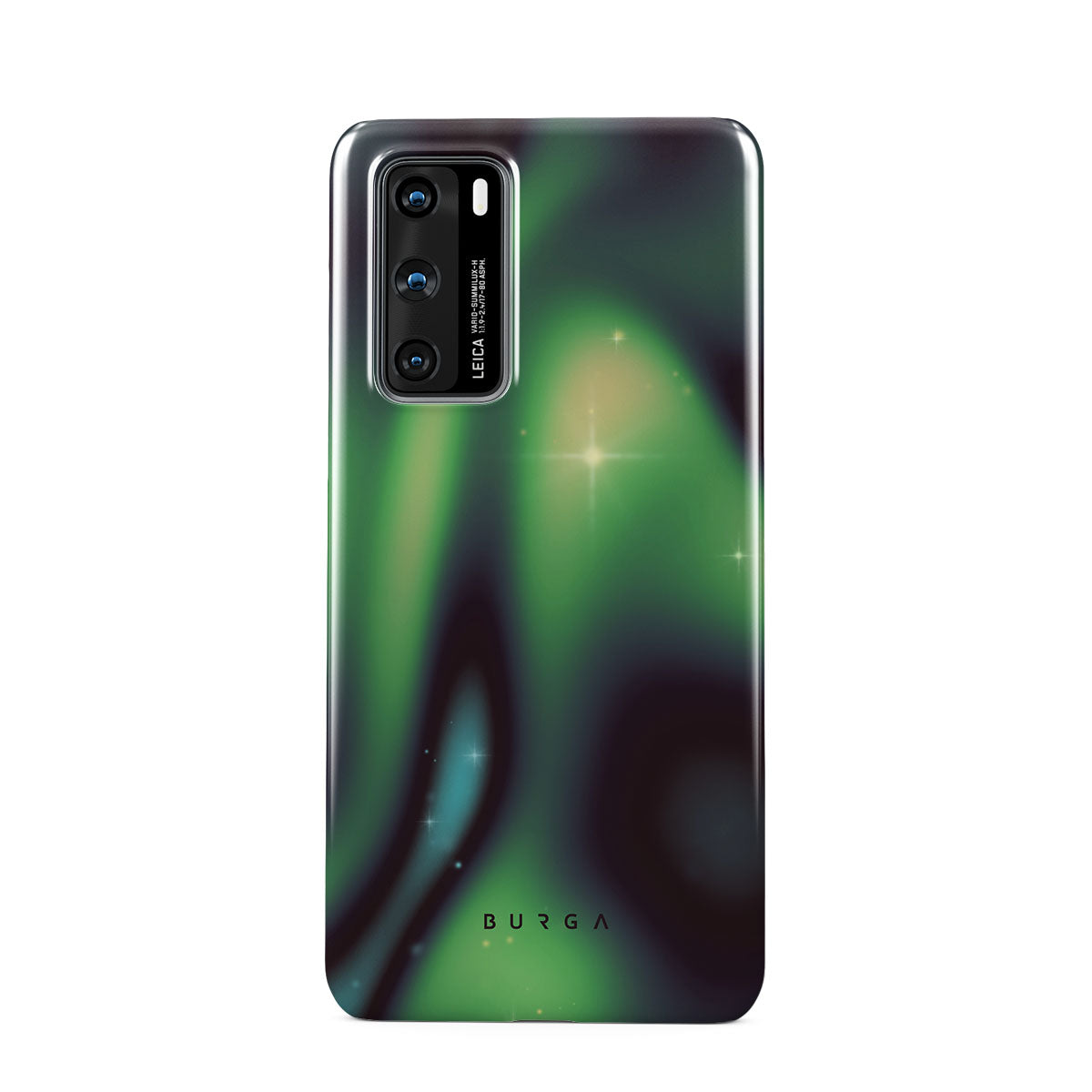 Nature's magic shines through in a mysterious display of lights. Delicate colors intertwine in a ballet of beauty and grace. Poetic harmony is captured with each swirl. It feels as if you're holding a piece of the night sky. Experience the serene grandeur of the Aurora Huawei P40 phone case design.