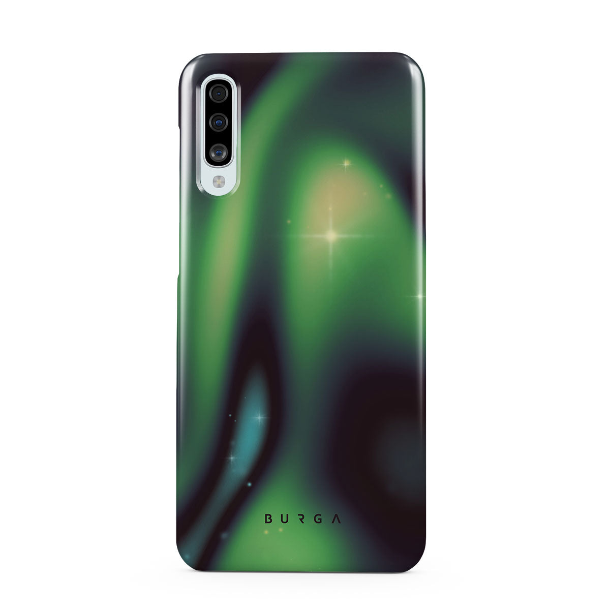 Nature's magic shines through in a mysterious display of lights. Delicate colors intertwine in a ballet of beauty and grace. Poetic harmony is captured with each swirl. It feels as if you're holding a piece of the night sky. Experience the serene grandeur of the Aurora Samsung Galaxy A50 phone case design.