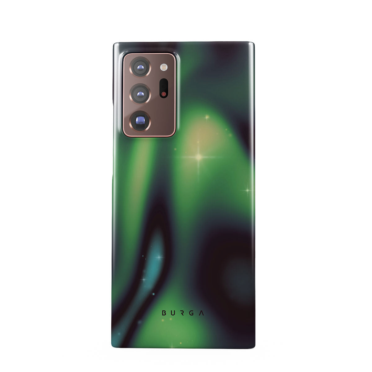 Nature's magic shines through in a mysterious display of lights. Delicate colors intertwine in a ballet of beauty and grace. Poetic harmony is captured with each swirl. It feels as if you're holding a piece of the night sky. Experience the serene grandeur of the Aurora Samsung Galaxy Note 20 Ultra 4G / 5G phone case design.