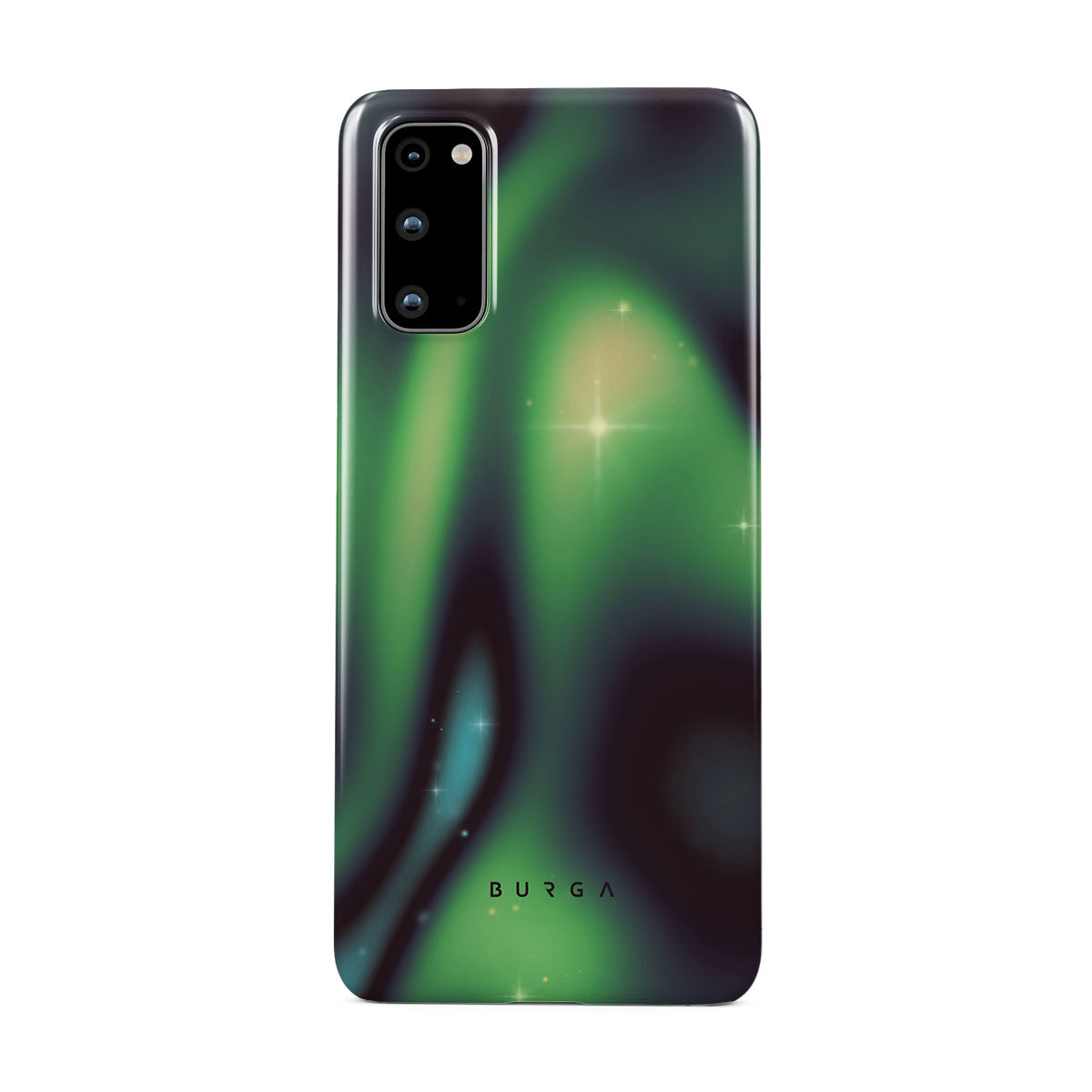 Nature's magic shines through in a mysterious display of lights. Delicate colors intertwine in a ballet of beauty and grace. Poetic harmony is captured with each swirl. It feels as if you're holding a piece of the night sky. Experience the serene grandeur of the Aurora Samsung Galaxy S20 4G / 5G phone case design.