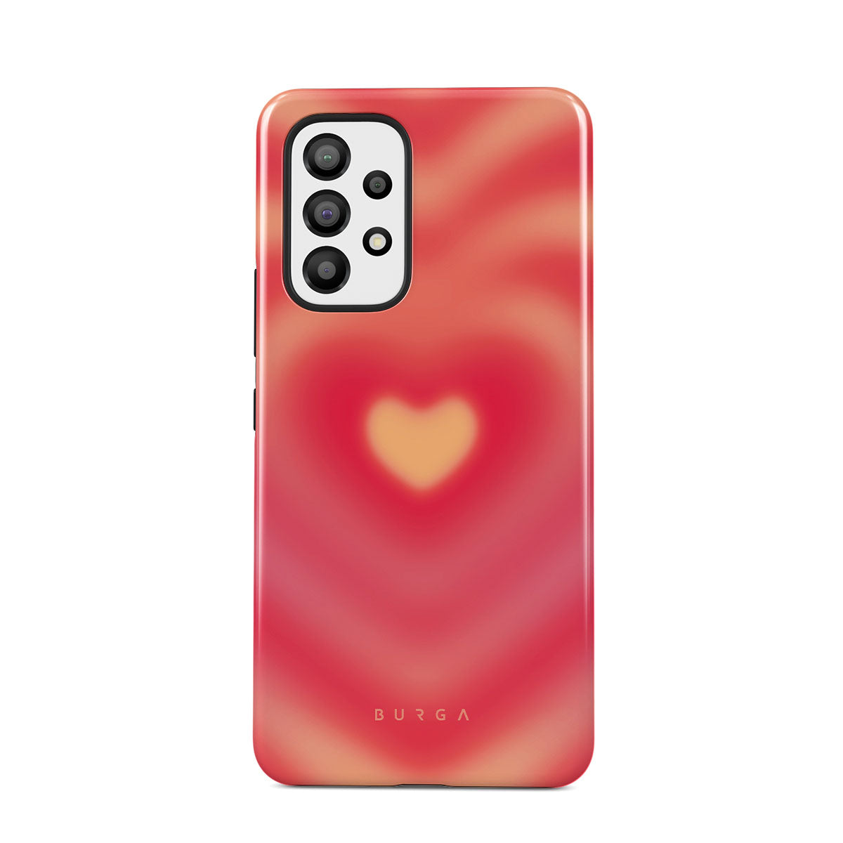 Feel the warmth of Awakening. With its glowing pink-orange shades and a heart at the center, this design is an emblem of one's inner essence. The Awakening Samsung Galaxy A33 phone case design reminds us of the soul's luminous rebirth, capturing the spirit of the Aura Collection and igniting the magic within.