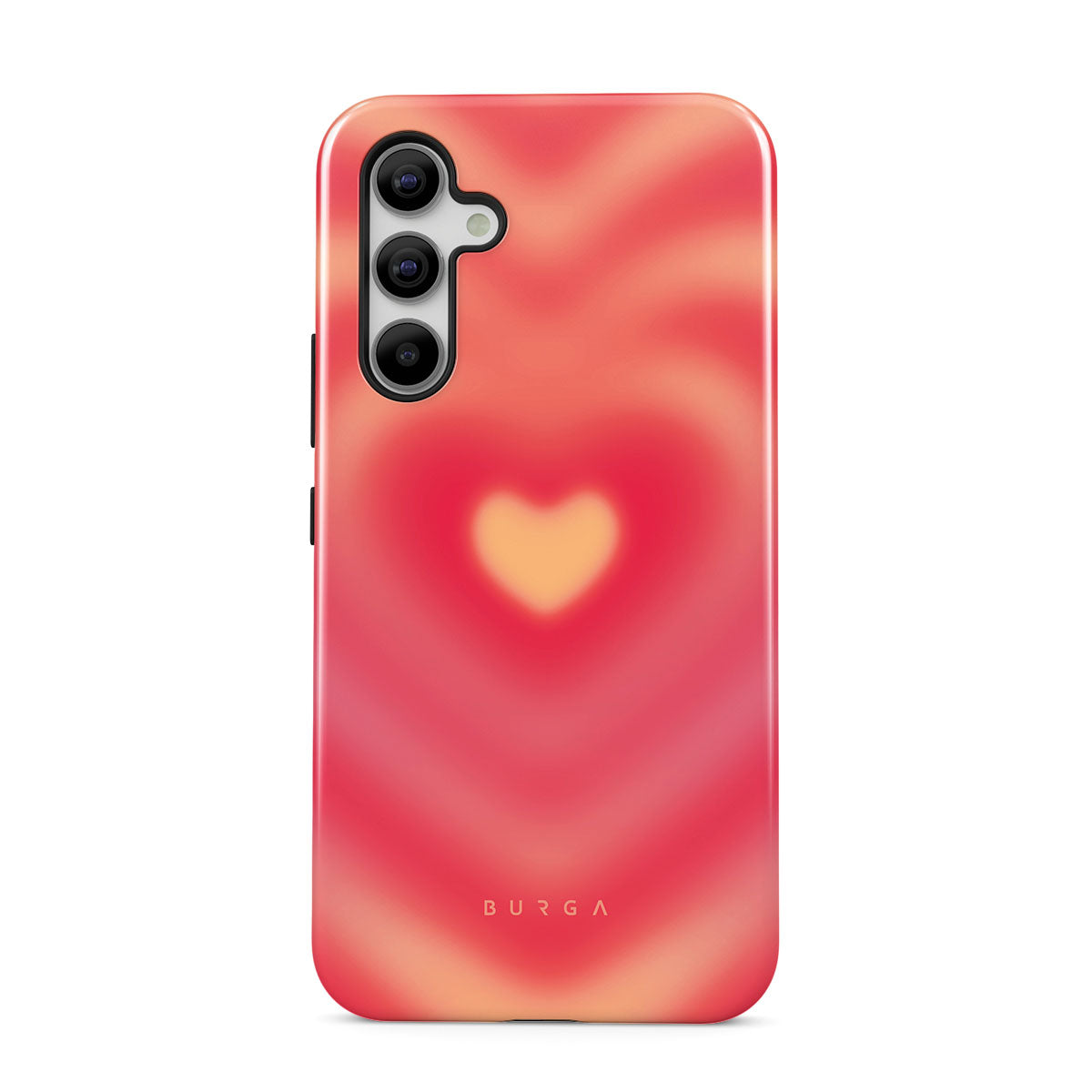 Feel the warmth of Awakening. With its glowing pink-orange shades and a heart at the center, this design is an emblem of one's inner essence. The Awakening Samsung Galaxy A55 phone case design reminds us of the soul's luminous rebirth, capturing the spirit of the Aura Collection and igniting the magic within.