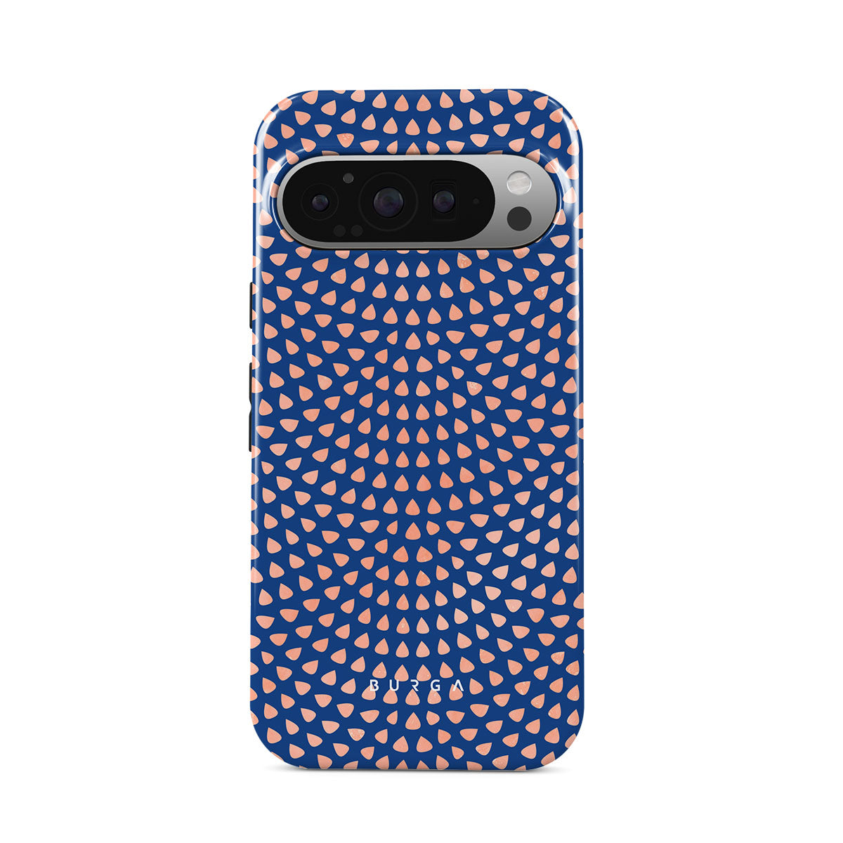 Rose gold teardrops meet a deep shade of blue in our Azure Waters Google Pixel 9 Pro XL phone case and create the duo worth taking with you every evening out. Add a touch of strictness with the symmetrical teardrops pattern paving the way and keeping your phone out of harm's way with the case that is as protective as it is beautiful.