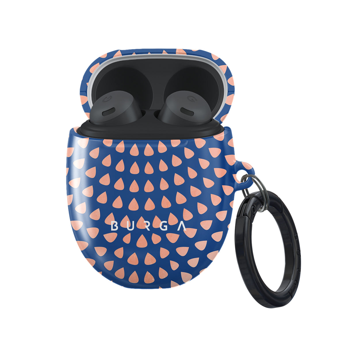 Rose gold teardrops meet a deep shade of blue in our Azure Waters Google Pixel Buds Pro case cover and create the duo worth taking with you every evening out. Add a touch of strictness with the symmetrical teardrops pattern paving the way and keeping your Google Pixel Buds out of harm's way with the case that is as protective as it is beautiful.
