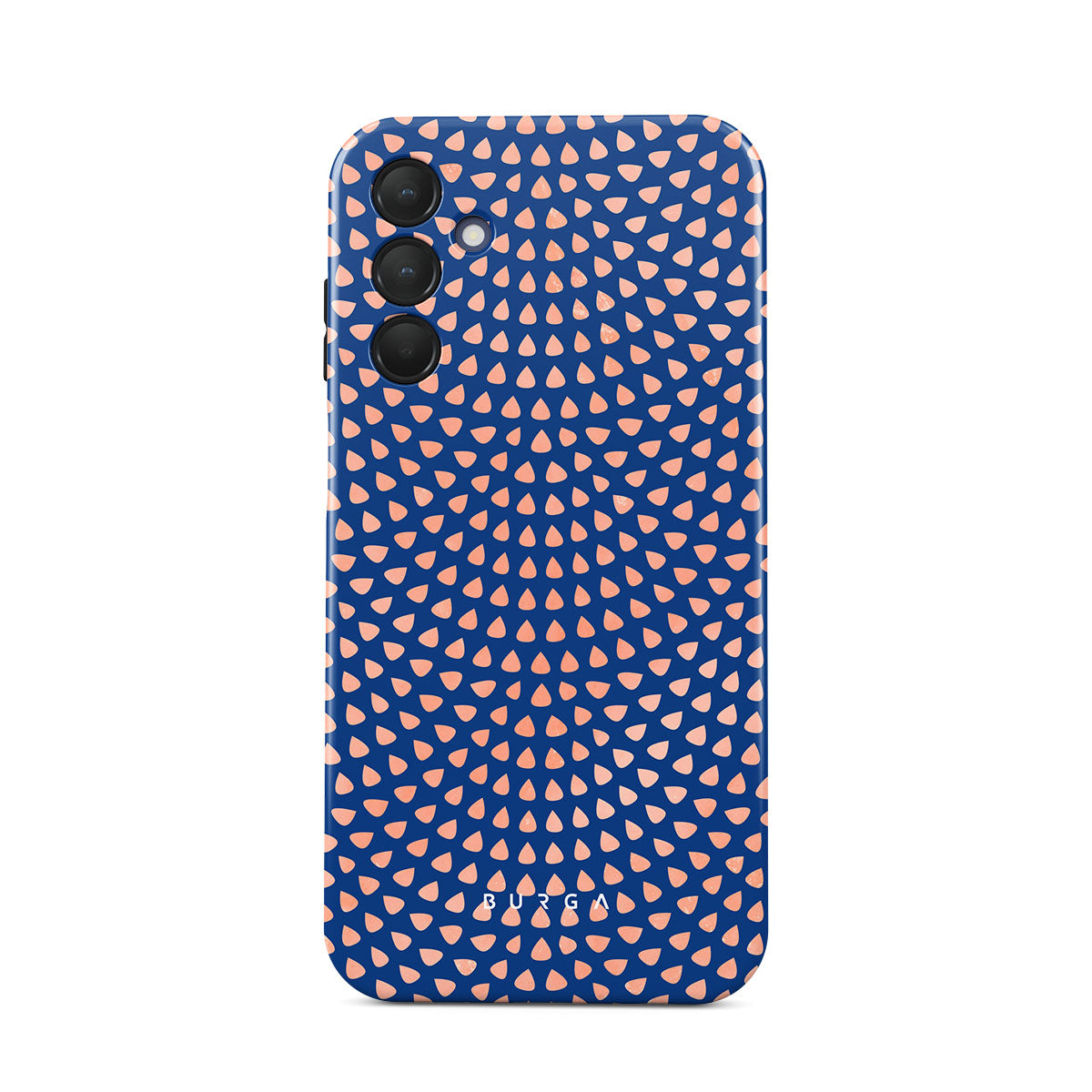 Rose gold teardrops meet a deep shade of blue in our Azure Waters Samsung Galaxy A15 4G / 5G phone case and create the duo worth taking with you every evening out. Add a touch of strictness with the symmetrical teardrops pattern paving the way and keeping your phone out of harm's way with the case that is as protective as it is beautiful.