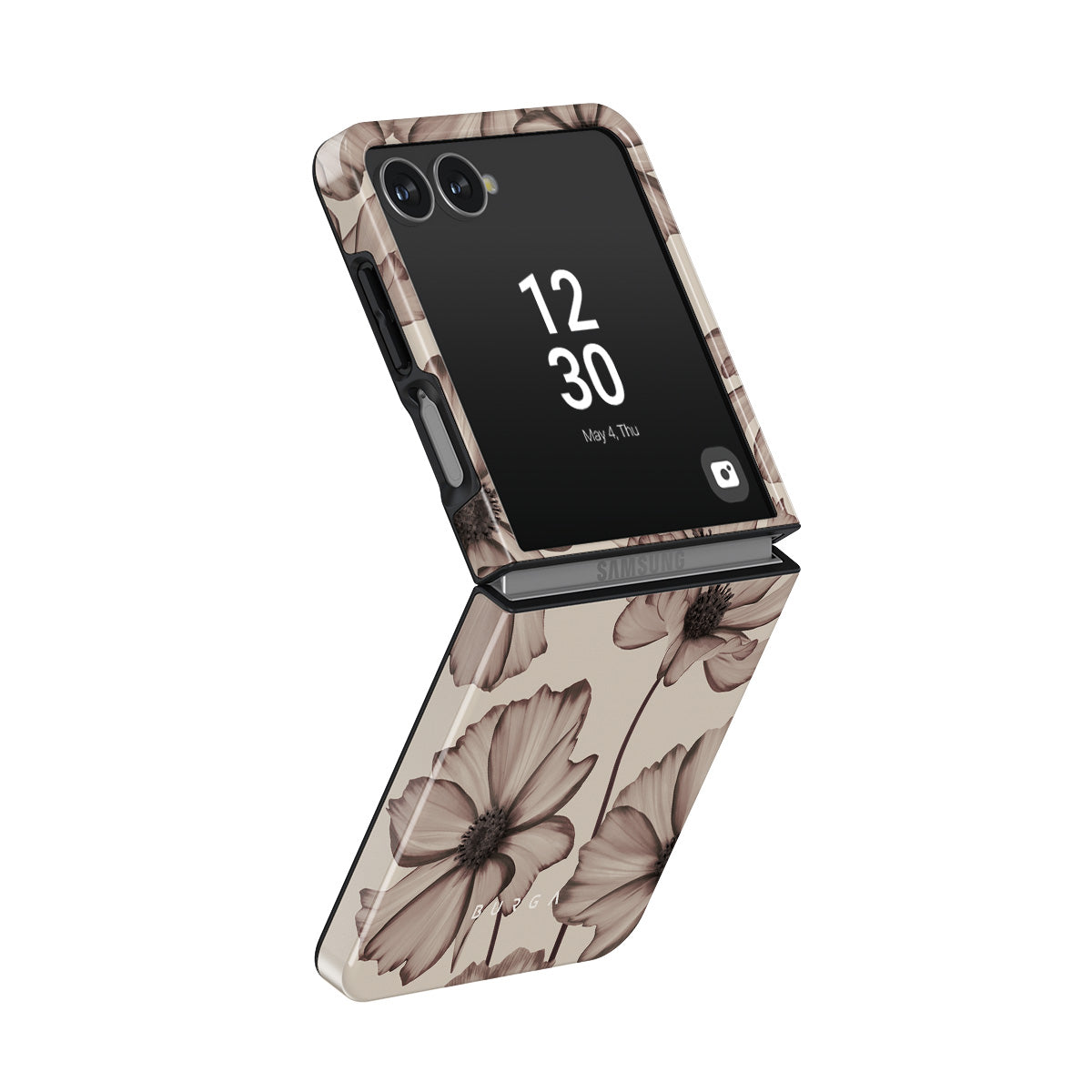 This Samsung Galaxy Z Flip 7 phone case design feels like an unfinished love letter, soft blooms caught in a delicate balance between bloom and decay. Barely Yours is for the moments when desire is just within reach, its beauty fragile yet fierce, daring you to hold on a little longer.