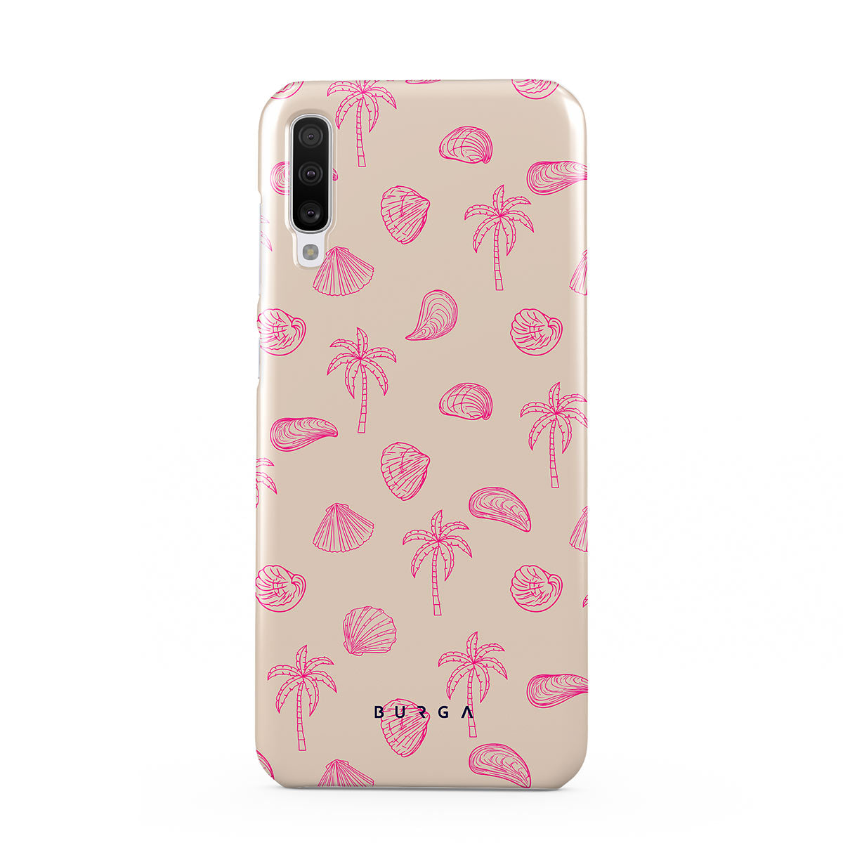 Lovely, beachy, and pink is what we can say about our Beach Please Samsung Galaxy A70 phone case design. The playful pattern of palms and seashells will look cute in your summer selfies. Add that playful touch to your everyday life and keep your phone safe from scratches the sand can make!
