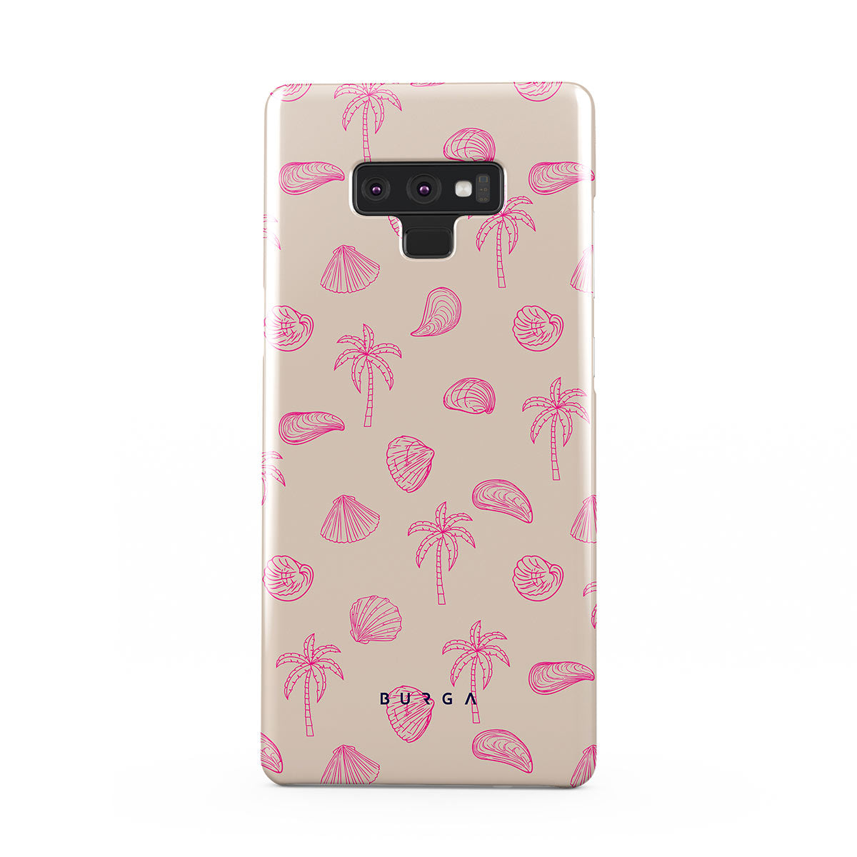 Lovely, beachy, and pink is what we can say about our Beach Please Samsung Galaxy Note 9 phone case design. The playful pattern of palms and seashells will look cute in your summer selfies. Add that playful touch to your everyday life and keep your phone safe from scratches the sand can make!