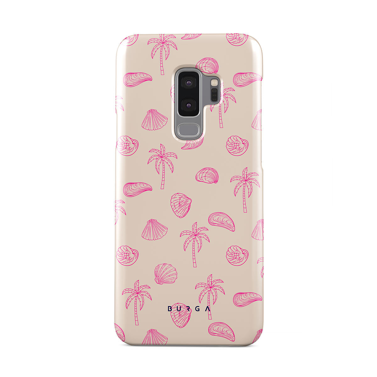 Lovely, beachy, and pink is what we can say about our Beach Please Samsung Galaxy S9 Plus phone case design. The playful pattern of palms and seashells will look cute in your summer selfies. Add that playful touch to your everyday life and keep your phone safe from scratches the sand can make!