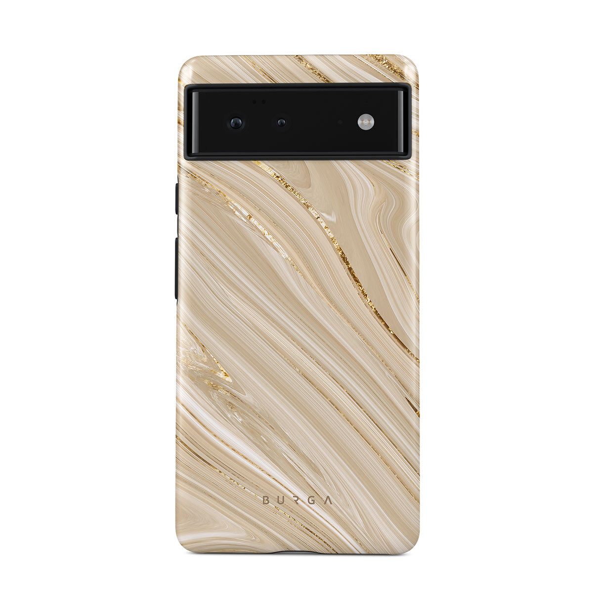 The Full Glam Google Pixel 6a phone case exudes elegance and softness in the beige color scheme with golden accents. The delicate design of the phone case will enhance your style and keep your phone safe and sound while doing that.