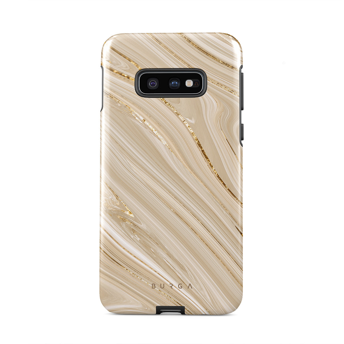 The Full Glam Samsung Galaxy S10E phone case exudes elegance and softness in the beige color scheme with golden accents. The delicate design of the phone case will enhance your style and keep your phone safe and sound while doing that.