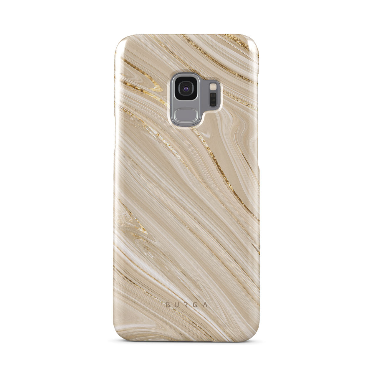 The Full Glam Samsung Galaxy S9 phone case exudes elegance and softness in the beige color scheme with golden accents. The delicate design of the phone case will enhance your style and keep your phone safe and sound while doing that.