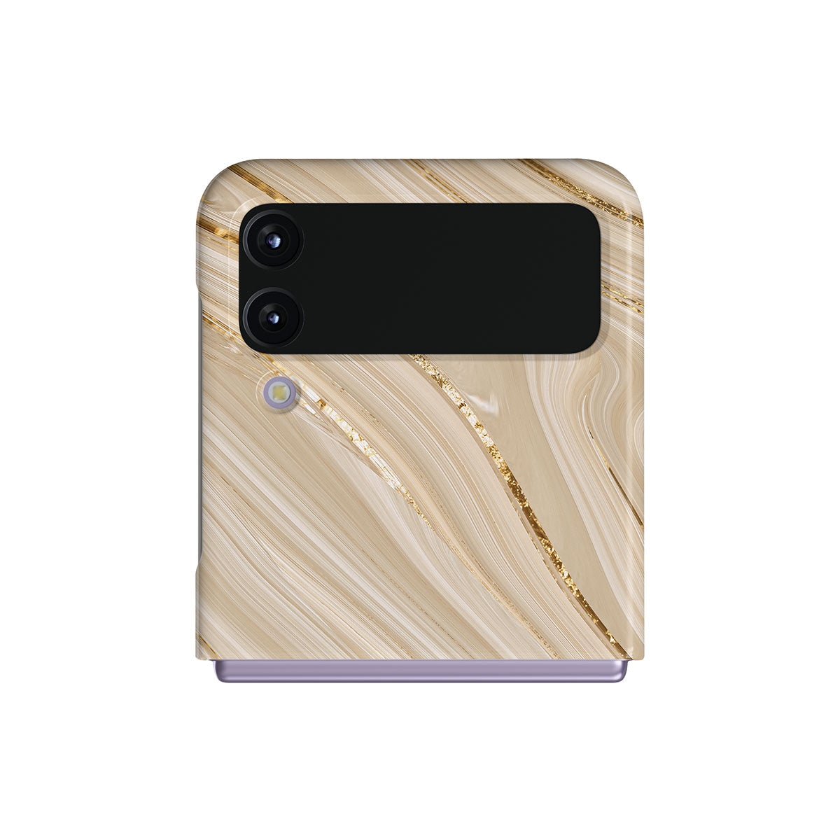 The Full Glam Samsung Galaxy Z Flip 4 phone case exudes elegance and softness in the beige color scheme with golden accents. The delicate design of the phone case will enhance your style and keep your phone safe and sound while doing that.
