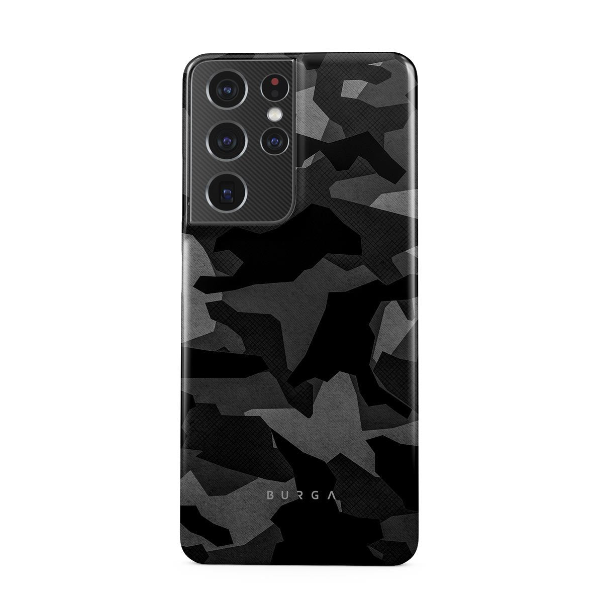 Sometimes, all you need is a possibility to blend into nature. With our Night Black Camo Samsung Galaxy S21 Ultra phone case, use black camouflage as a way to express your curious side or blend in with the surroundings. A stylish accessory can offer heavy-duty protection too!