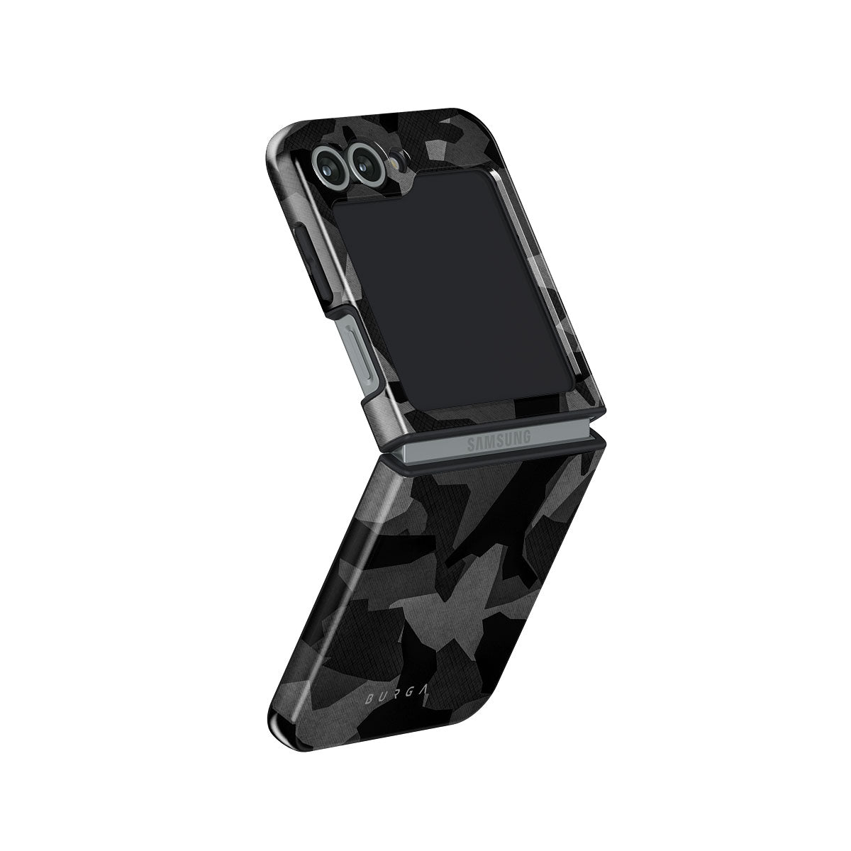 Sometimes, all you need is a possibility to blend into nature. With our Night Black Camo Samsung Galaxy Z Flip 6 phone case, use black camouflage as a way to express your curious side or blend in with the surroundings. A stylish accessory can offer heavy-duty protection too!