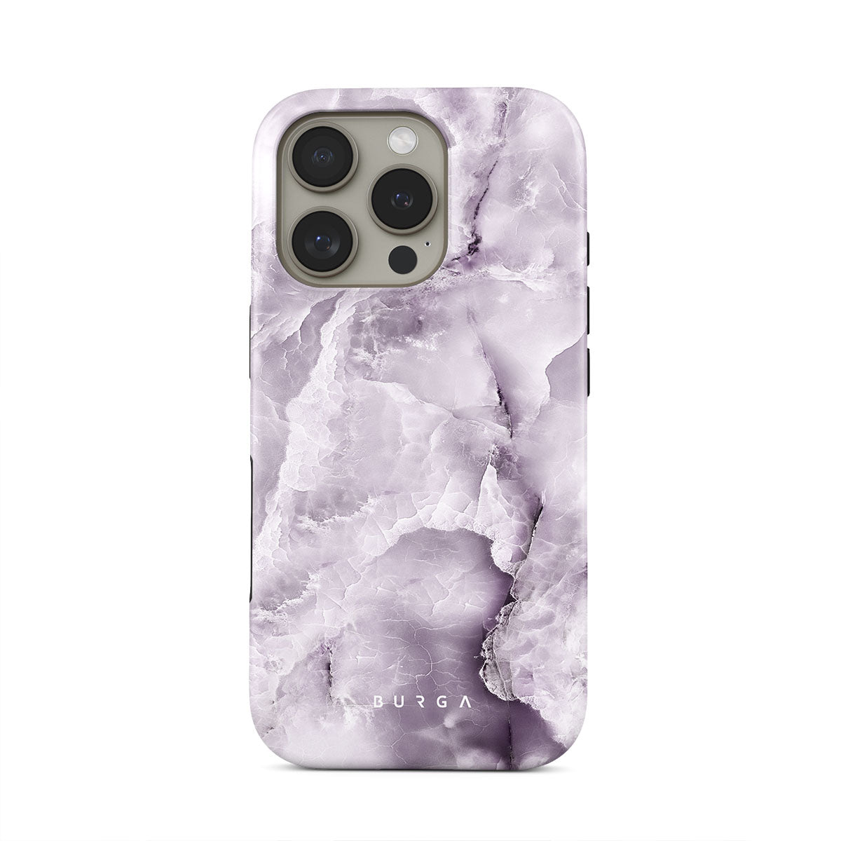 The gray violet-colored Black Currant iPhone 16 Pro Max phone case showcases a soft marble design that will add a touch of luxury to your style. The color itself represents the future and dreams, yet the nature of it offers a calming effect. Keep a piece of serenity in your hands.