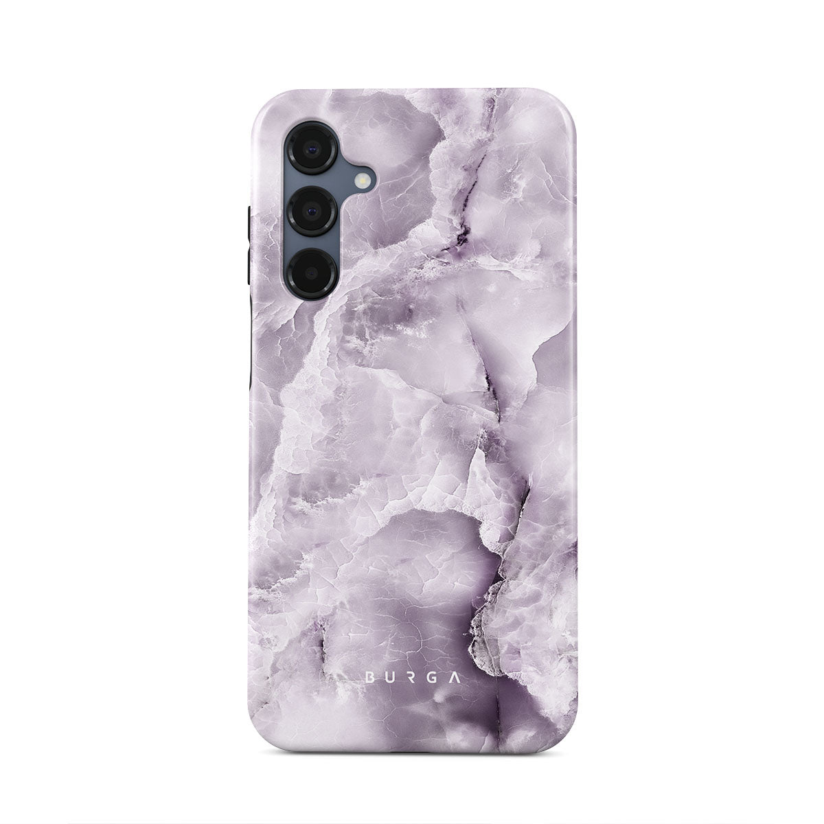 The gray violet-colored Black Currant Samsung Galaxy A16 phone case showcases a soft marble design that will add a touch of luxury to your style. The color itself represents the future and dreams, yet the nature of it offers a calming effect. Keep a piece of serenity in your hands.