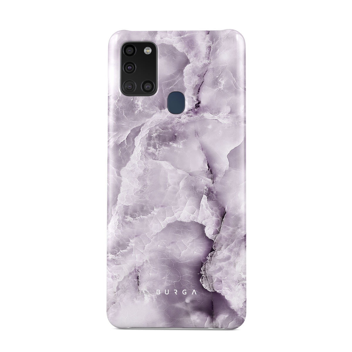 The gray violet-colored Black Currant Samsung Galaxy A21s 4G phone case showcases a soft marble design that will add a touch of luxury to your style. The color itself represents the future and dreams, yet the nature of it offers a calming effect. Keep a piece of serenity in your hands.