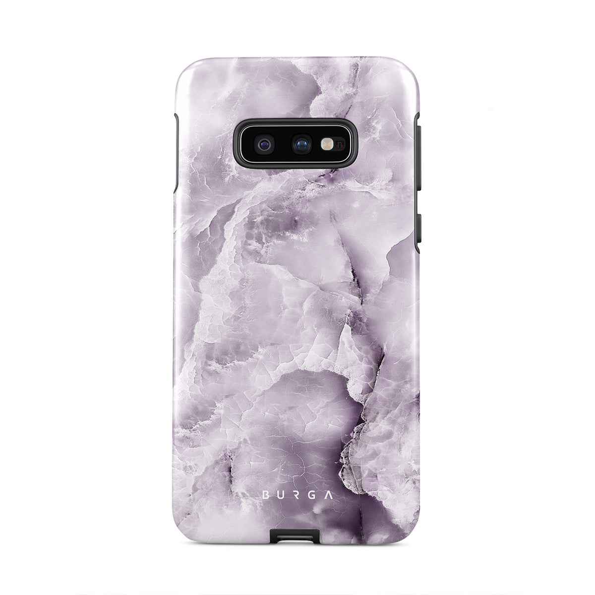 The gray violet-colored Black Currant Samsung Galaxy S10E phone case showcases a soft marble design that will add a touch of luxury to your style. The color itself represents the future and dreams, yet the nature of it offers a calming effect. Keep a piece of serenity in your hands.