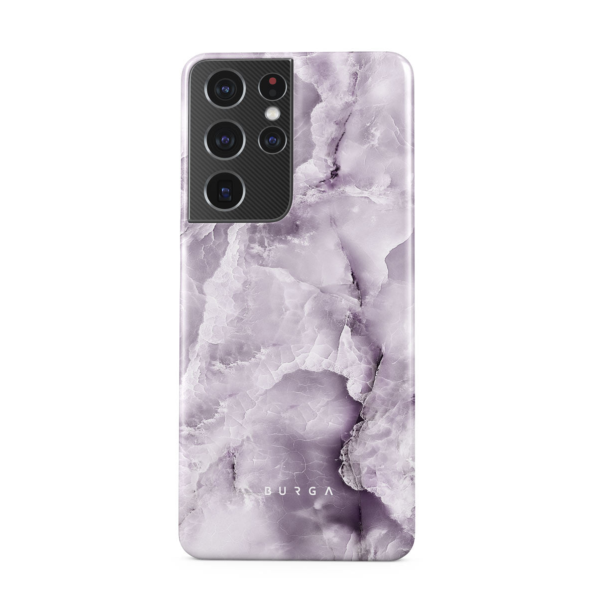 The gray violet-colored Black Currant Samsung Galaxy S21 Ultra phone case showcases a soft marble design that will add a touch of luxury to your style. The color itself represents the future and dreams, yet the nature of it offers a calming effect. Keep a piece of serenity in your hands.