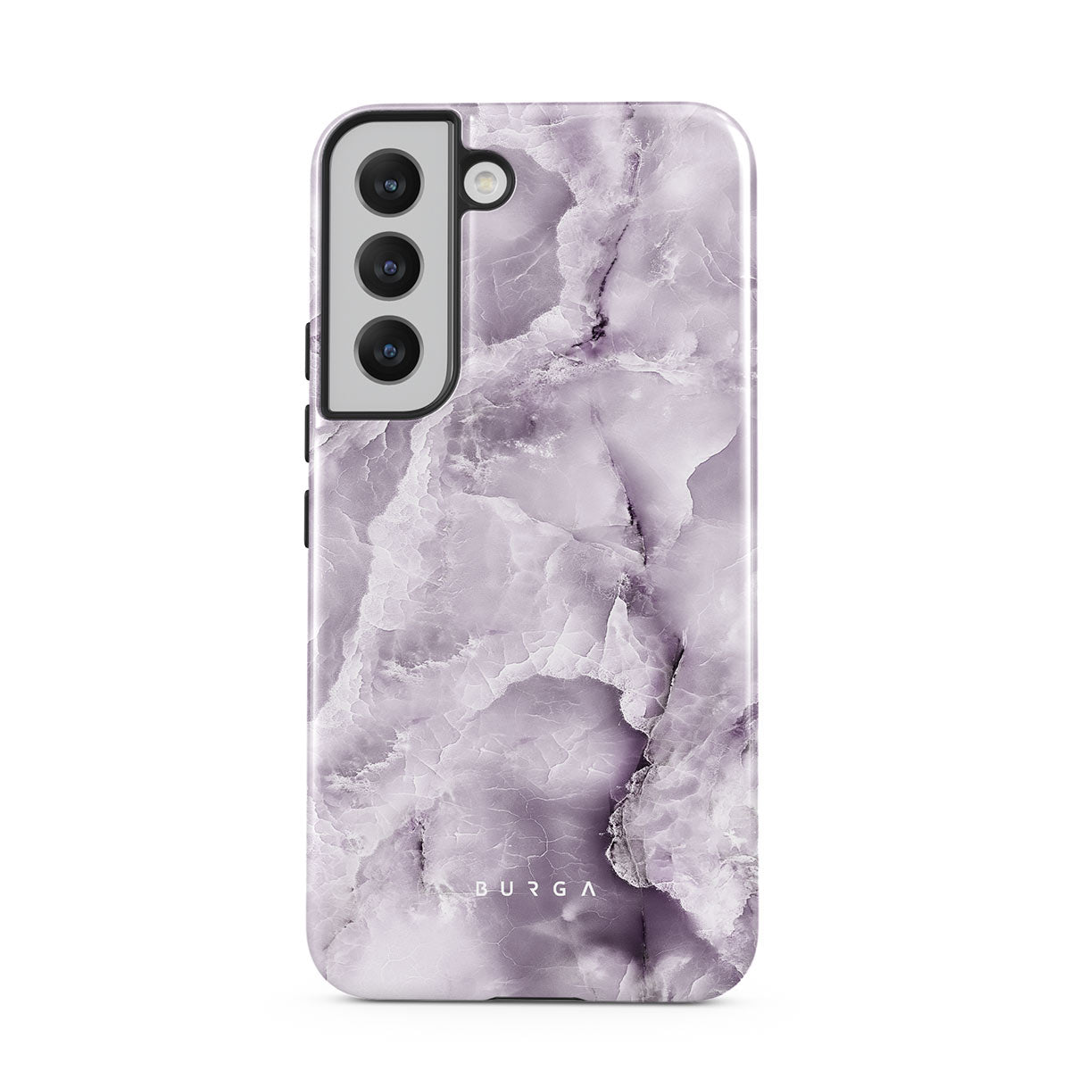 The gray violet-colored Black Currant Samsung Galaxy S22 phone case showcases a soft marble design that will add a touch of luxury to your style. The color itself represents the future and dreams, yet the nature of it offers a calming effect. Keep a piece of serenity in your hands.