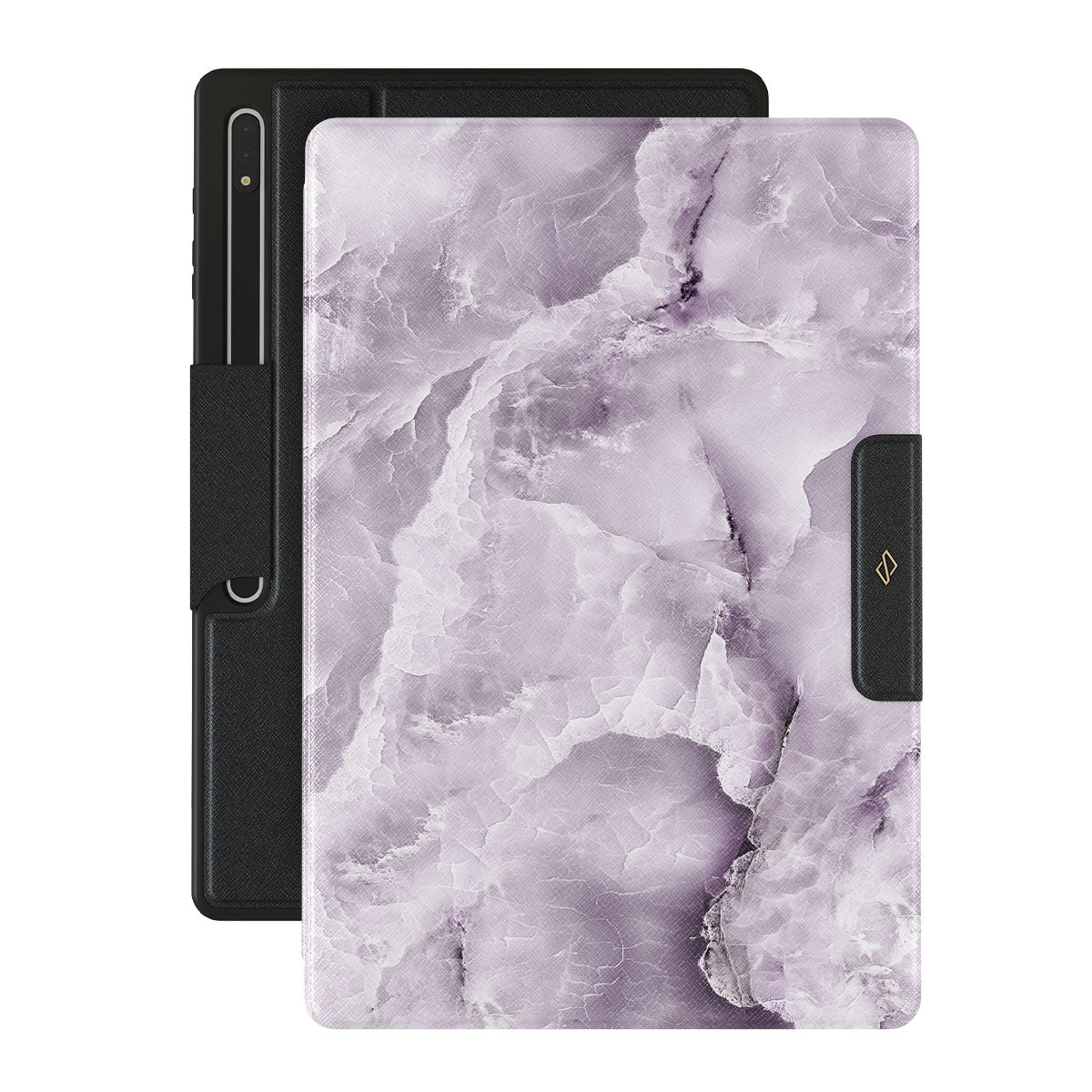 The gray violet-colored Black Currant Samsung Galaxy Tab S8 Ultra folio case showcases a soft marble design that will add a touch of luxury to your style. The color itself represents the future and dreams, yet the nature of it offers a calming effect. Keep a piece of serenity in your hands.