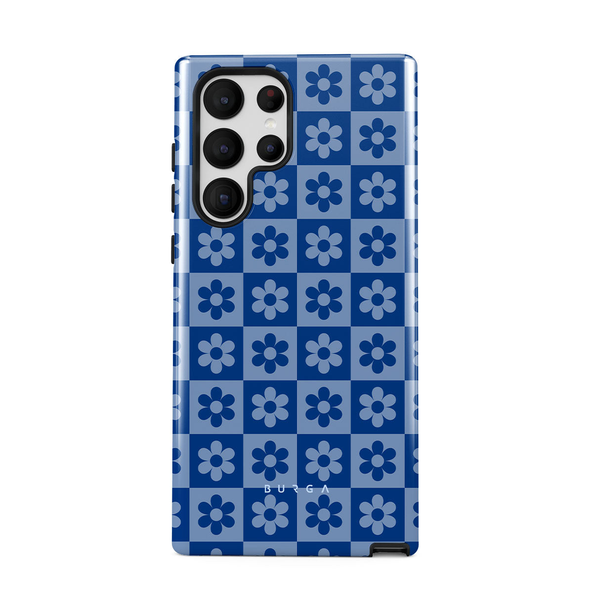 A true statement design, featuring a captivating checkered pattern with icy blue tones and a beautiful flower adorning each square. Our Samsung Galaxy S22 Ultra phone case not only offers reliable protection for your device but also captures the essence of the fun and carefree Y2K era. Embrace your inner flower child with the Bloom Boom phone case and let your tech bloom with style.