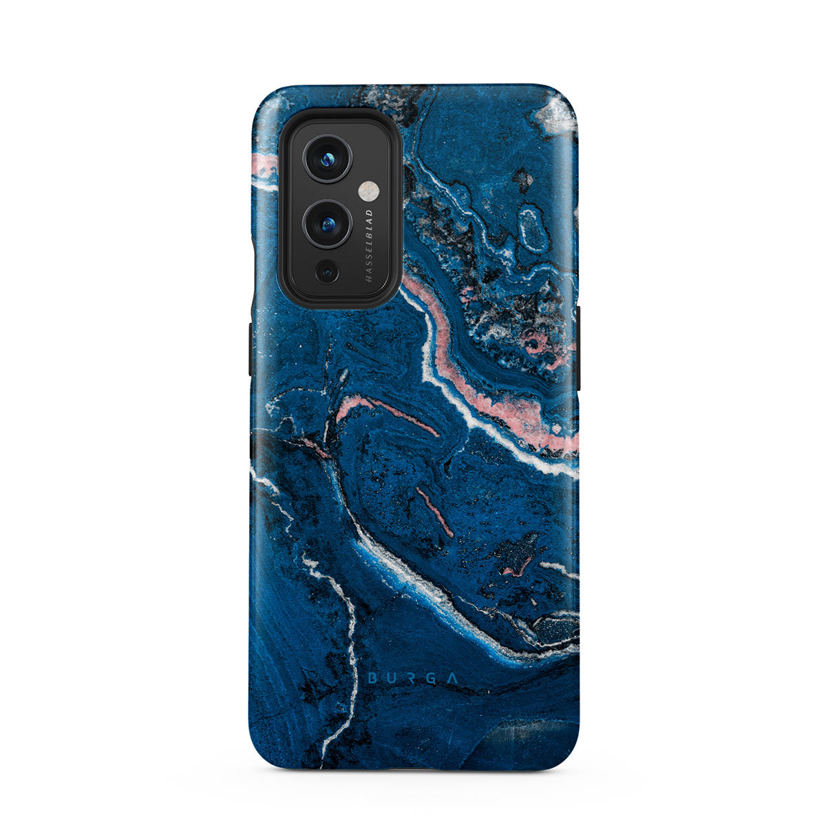 Electric indigo blue meets white, and pastel pink swirls in a unique marble pattern in our Blue Lagoon OnePlus 9 phone case. The modern take on a blue marble trend will look aesthetically pleasing on your device while offering durable protection from any falls.
