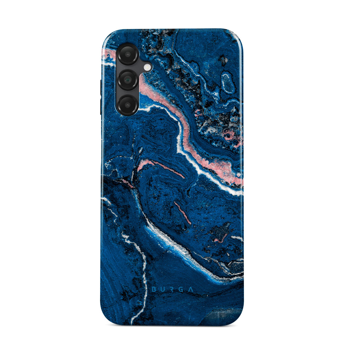 Electric indigo blue meets white, and pastel pink swirls in a unique marble pattern in our Blue Lagoon Samsung Galaxy A14 5G phone case. The modern take on a blue marble trend will look aesthetically pleasing on your device while offering durable protection from any falls.