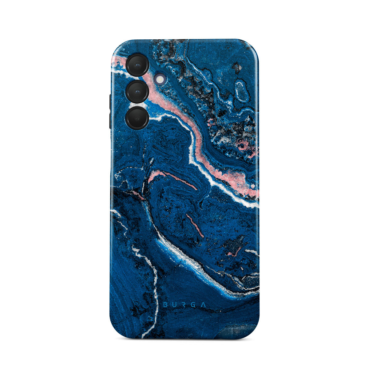 Electric indigo blue meets white, and pastel pink swirls in a unique marble pattern in our Blue Lagoon Samsung Galaxy A51 phone case. The modern take on a blue marble trend will look aesthetically pleasing on your device while offering durable protection from any falls.