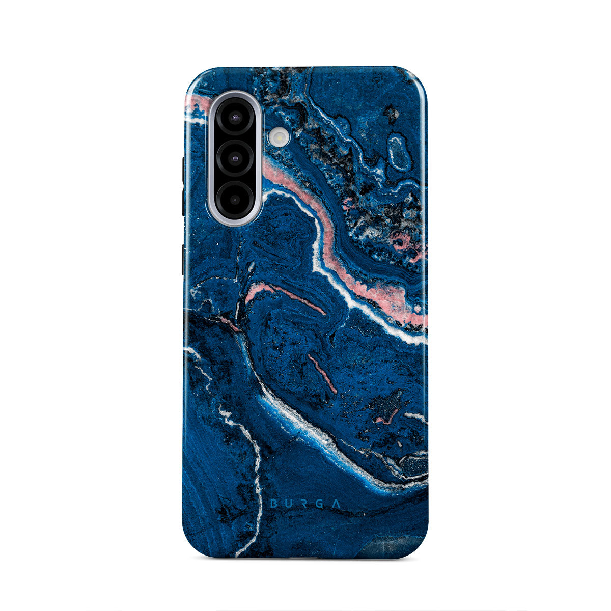 Electric indigo blue meets white, and pastel pink swirls in a unique marble pattern in our Blue Lagoon Samsung Galaxy A56 5G phone case. The modern take on a blue marble trend will look aesthetically pleasing on your device while offering durable protection from any falls.