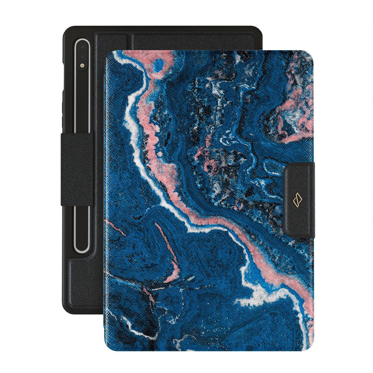 Electric indigo blue meets white, and pastel pink swirls in a unique marble pattern in our Blue Lagoon Samsung Galaxy Tab S8+/S7+/S7 FE folio case. The modern take on a blue marble trend will look aesthetically pleasing on your device while offering durable protection from any falls.