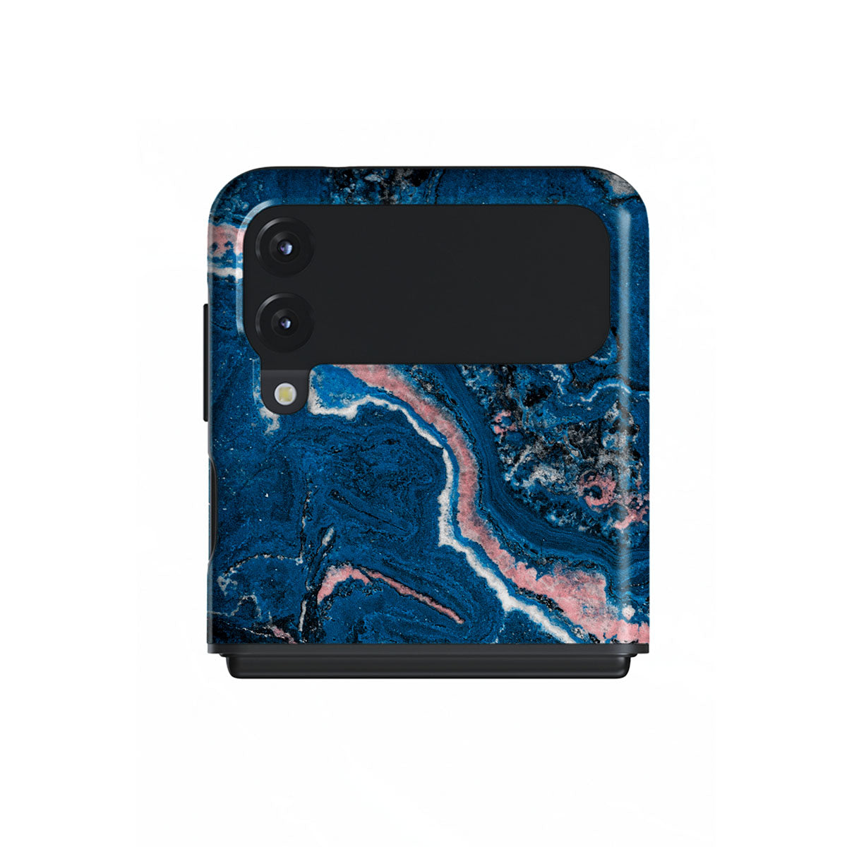 Electric indigo blue meets white, and pastel pink swirls in a unique marble pattern in our Blue Lagoon Samsung Galaxy Z Flip 3 phone case. The modern take on a blue marble trend will look aesthetically pleasing on your device while offering durable protection from any falls.