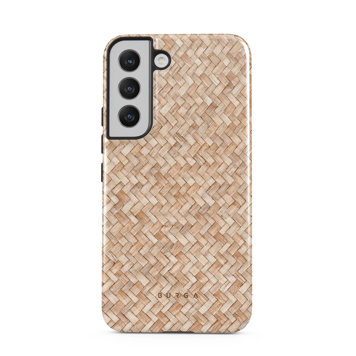 Inspired by a traditional Lauhala Matting, our Boho Dreams Samsung Galaxy S22 Plus phone case will surely remind you of a tropical vacation. Carry this feeling of relaxation with this Boho chic case that will also protect your phone.