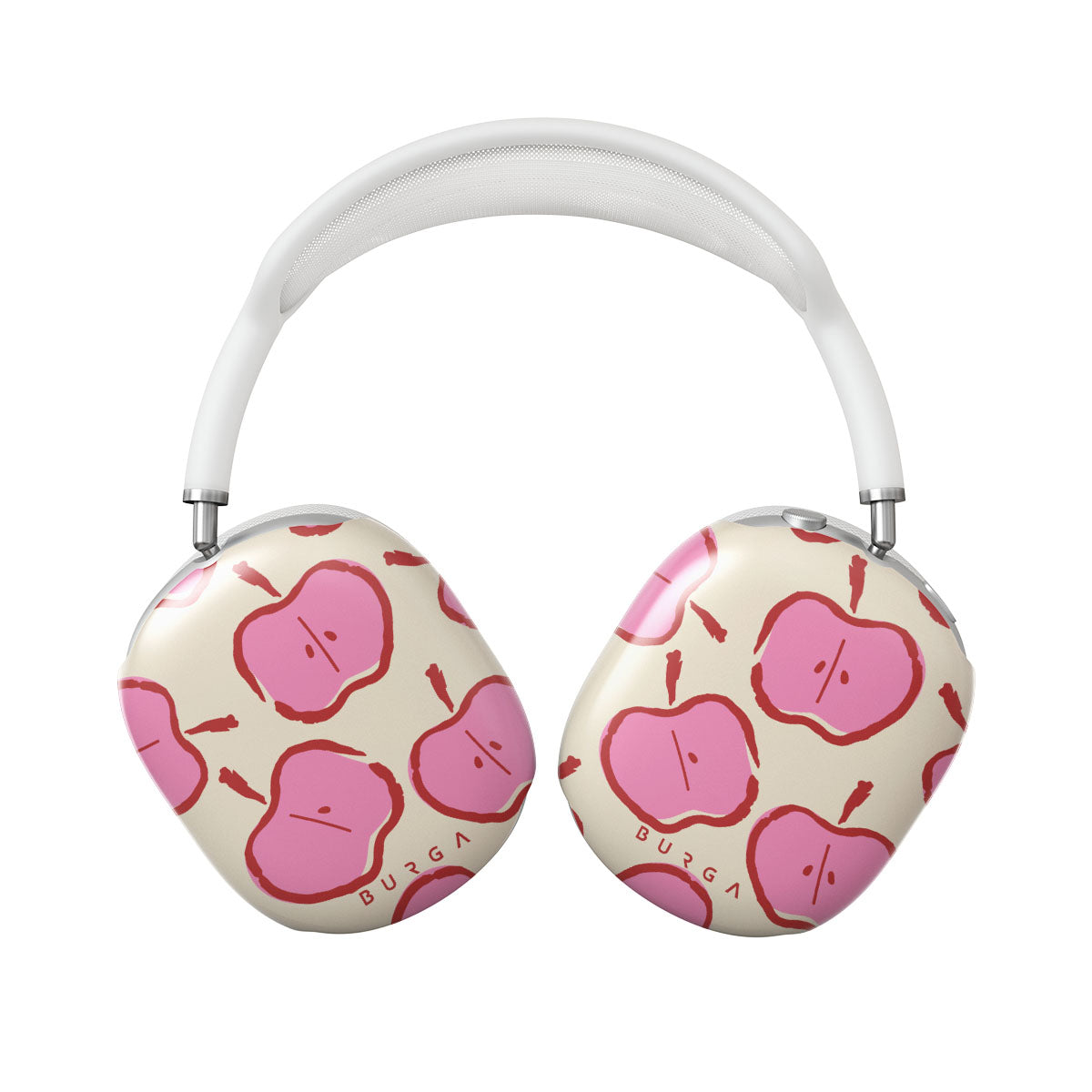 Our Bon Appétit Apple AirPods Max case cover design makes every day feel like a magical adventure filled with sweet surprises. The playful pink hues of the apples stand out brilliantly against the serene cream background, creating a captivating and enchanting visual.