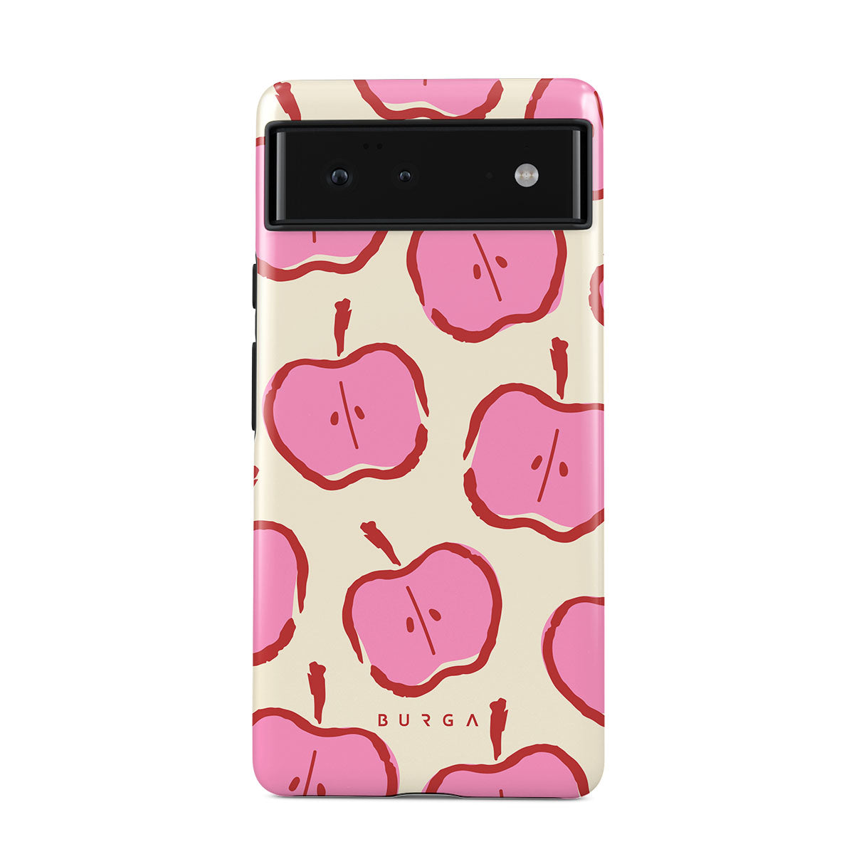 Our Bon Appétit Google Pixel 6 phone case design makes every day feel like a magical adventure filled with sweet surprises. The playful pink hues of the apples stand out brilliantly against the serene cream background, creating a captivating and enchanting visual.