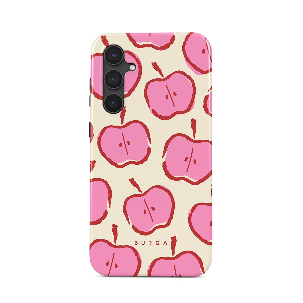 Our Bon Appétit Samsung Galaxy S23 FE phone case design makes every day feel like a magical adventure filled with sweet surprises. The playful pink hues of the apples stand out brilliantly against the serene cream background, creating a captivating and enchanting visual.
