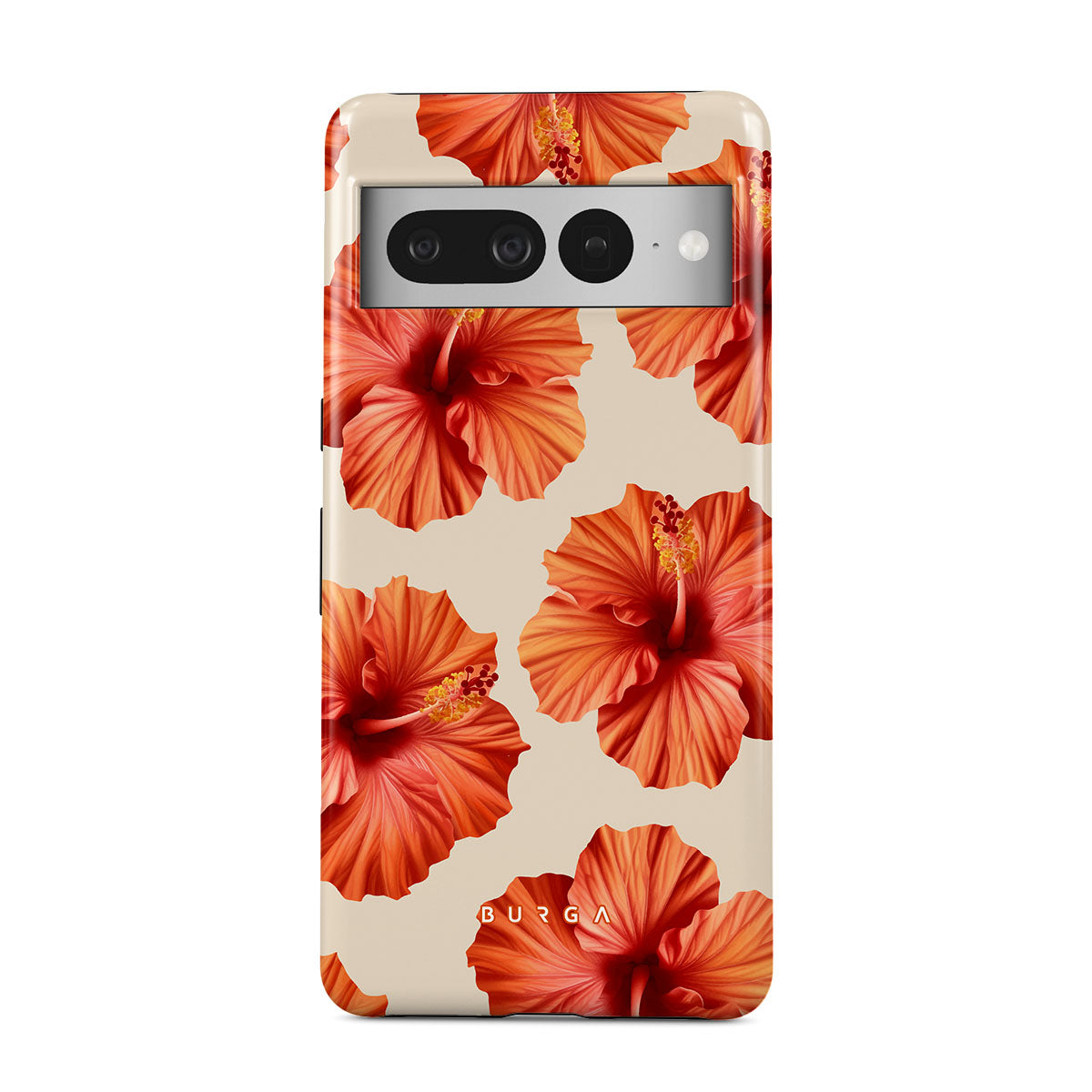 Transport yourself to a lush tropical escape with Bonita. Featuring bold, beautiful hibiscus blooms that pop against a creamy backdrop, this Google Pixel 7 Pro phone case design is perfect for those who dream of vibrant, floral beauty and exotic adventures.
