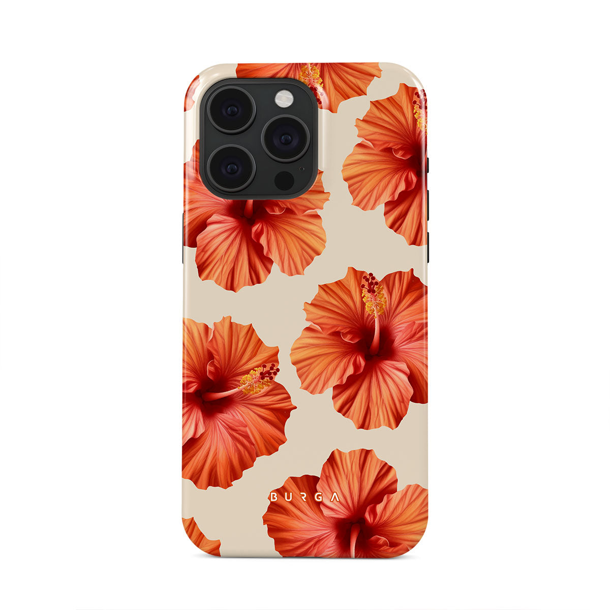 Transport yourself to a lush tropical escape with Bonita. Featuring bold, beautiful hibiscus blooms that pop against a creamy backdrop, this iPhone 15 Pro phone case design is perfect for those who dream of vibrant, floral beauty and exotic adventures.