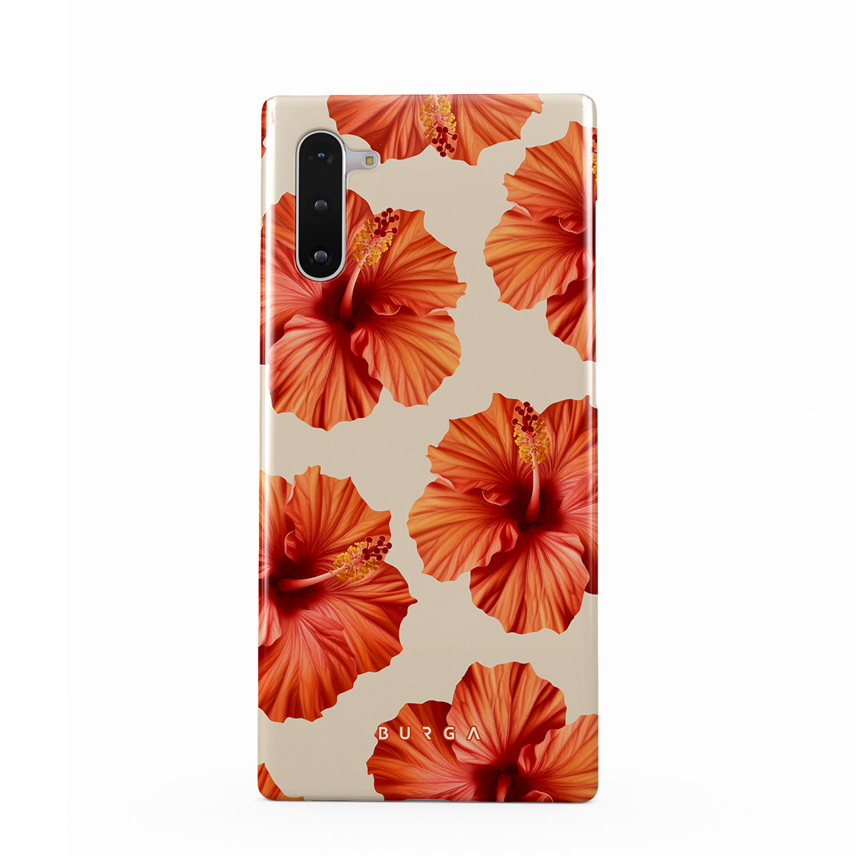 Transport yourself to a lush tropical escape with Bonita. Featuring bold, beautiful hibiscus blooms that pop against a creamy backdrop, this Samsung Galaxy Note 10 phone case design is perfect for those who dream of vibrant, floral beauty and exotic adventures.