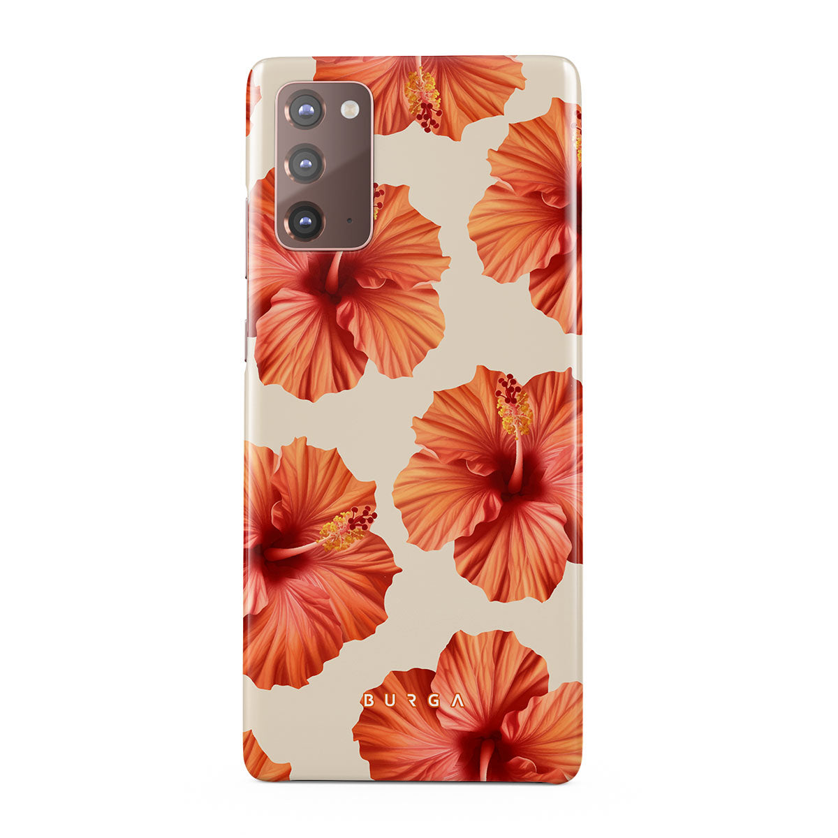 Transport yourself to a lush tropical escape with Bonita. Featuring bold, beautiful hibiscus blooms that pop against a creamy backdrop, this Samsung Galaxy Note 20 4G / 5G phone case design is perfect for those who dream of vibrant, floral beauty and exotic adventures.