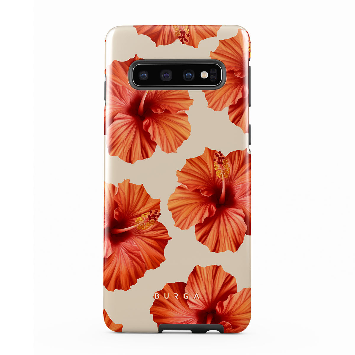 Transport yourself to a lush tropical escape with Bonita. Featuring bold, beautiful hibiscus blooms that pop against a creamy backdrop, this Samsung Galaxy S10 4G phone case design is perfect for those who dream of vibrant, floral beauty and exotic adventures.