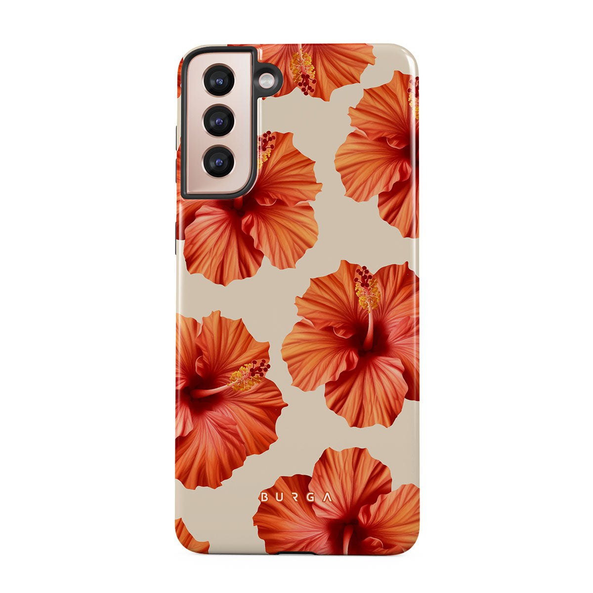 Transport yourself to a lush tropical escape with Bonita. Featuring bold, beautiful hibiscus blooms that pop against a creamy backdrop, this Samsung Galaxy S21 Plus phone case design is perfect for those who dream of vibrant, floral beauty and exotic adventures.